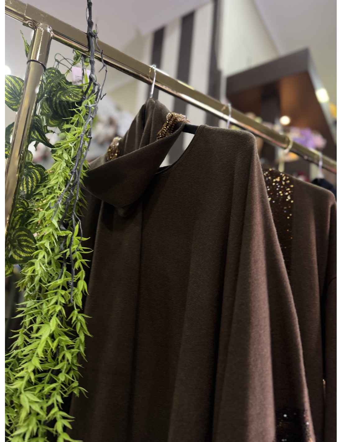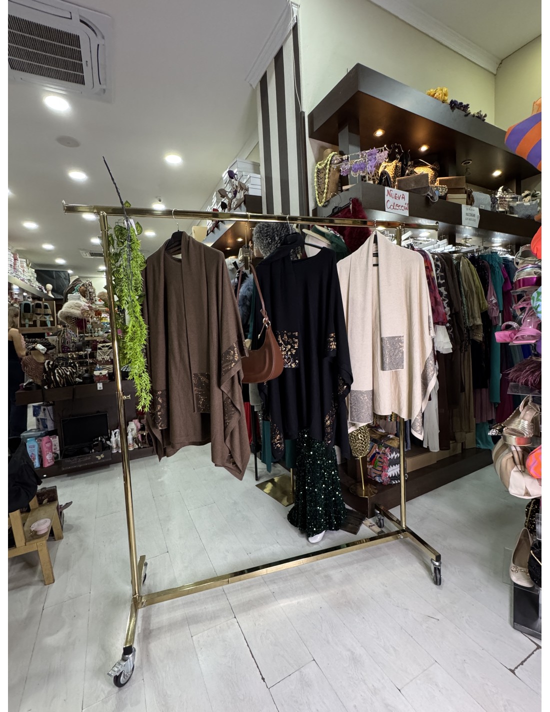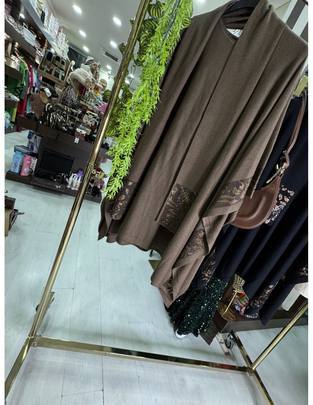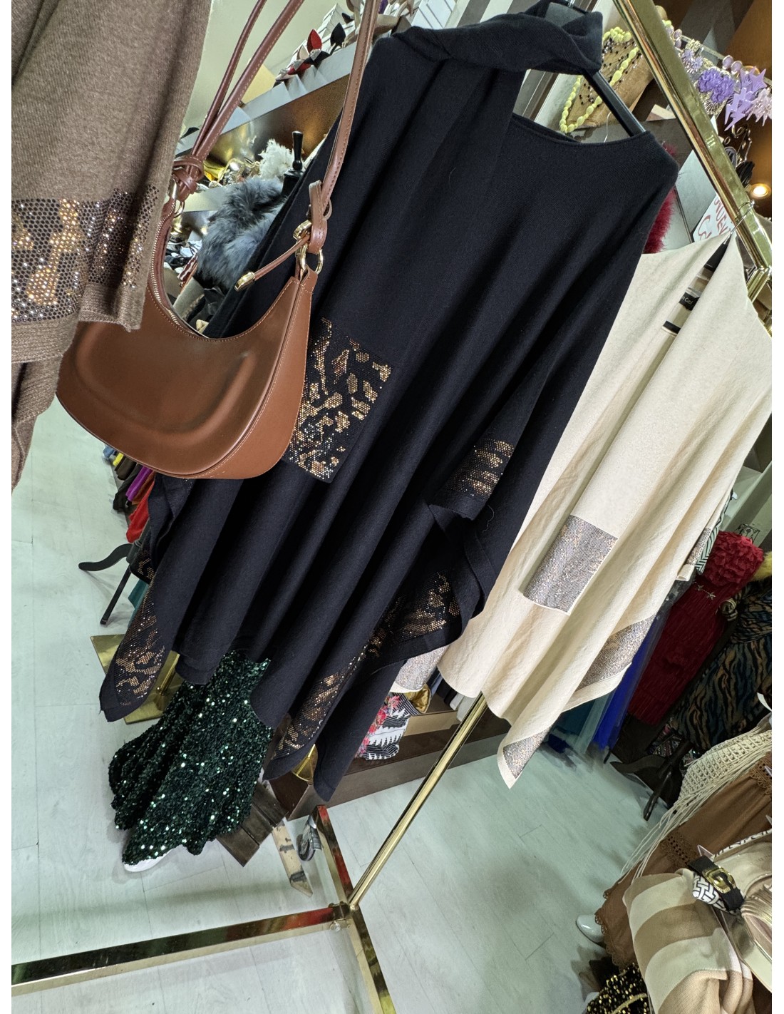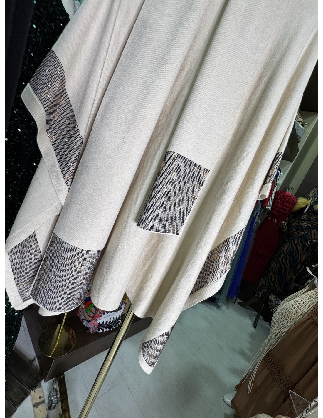 CAPA PUNTO PONCHO CON PAÑUELO A JUEGO ,LLEVA DETALLES DE STRASS EN LA PARTE BAJA .