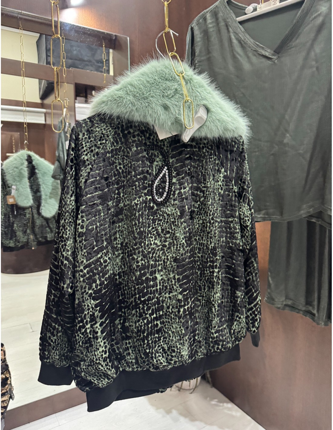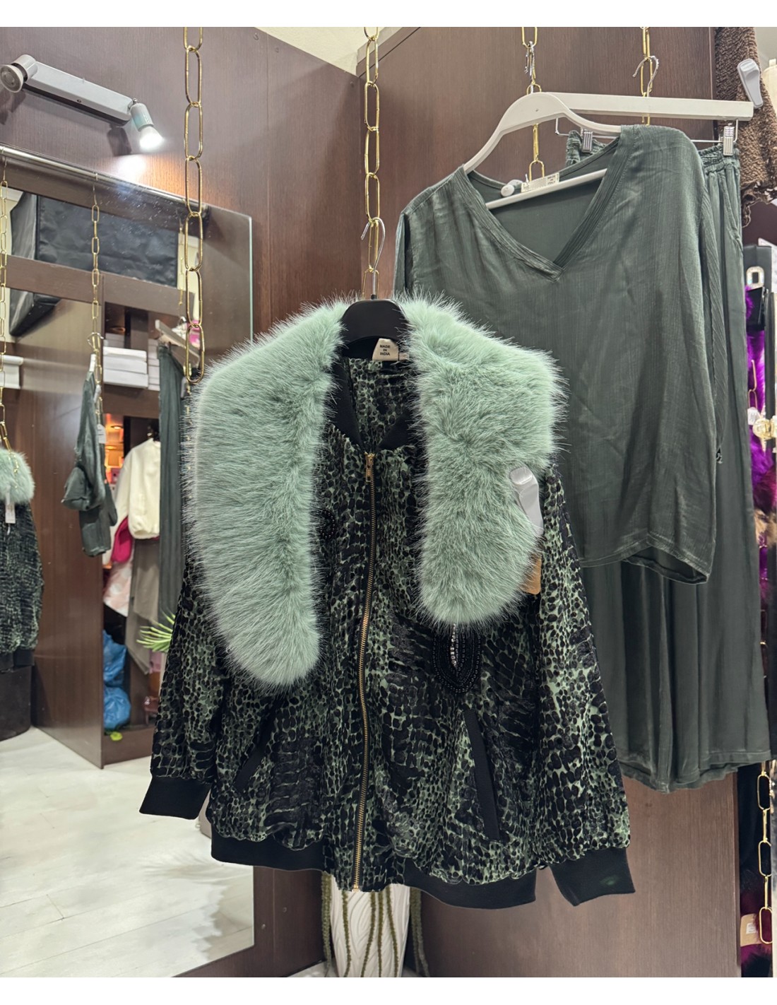 BOMBER DE TERCIOPELO BORDADO CON DETALLES JOYA ,LLEVA FORRO ,CIERRE CREMALLERA Y VIENEN CON BOLSILLOS LATERALES .