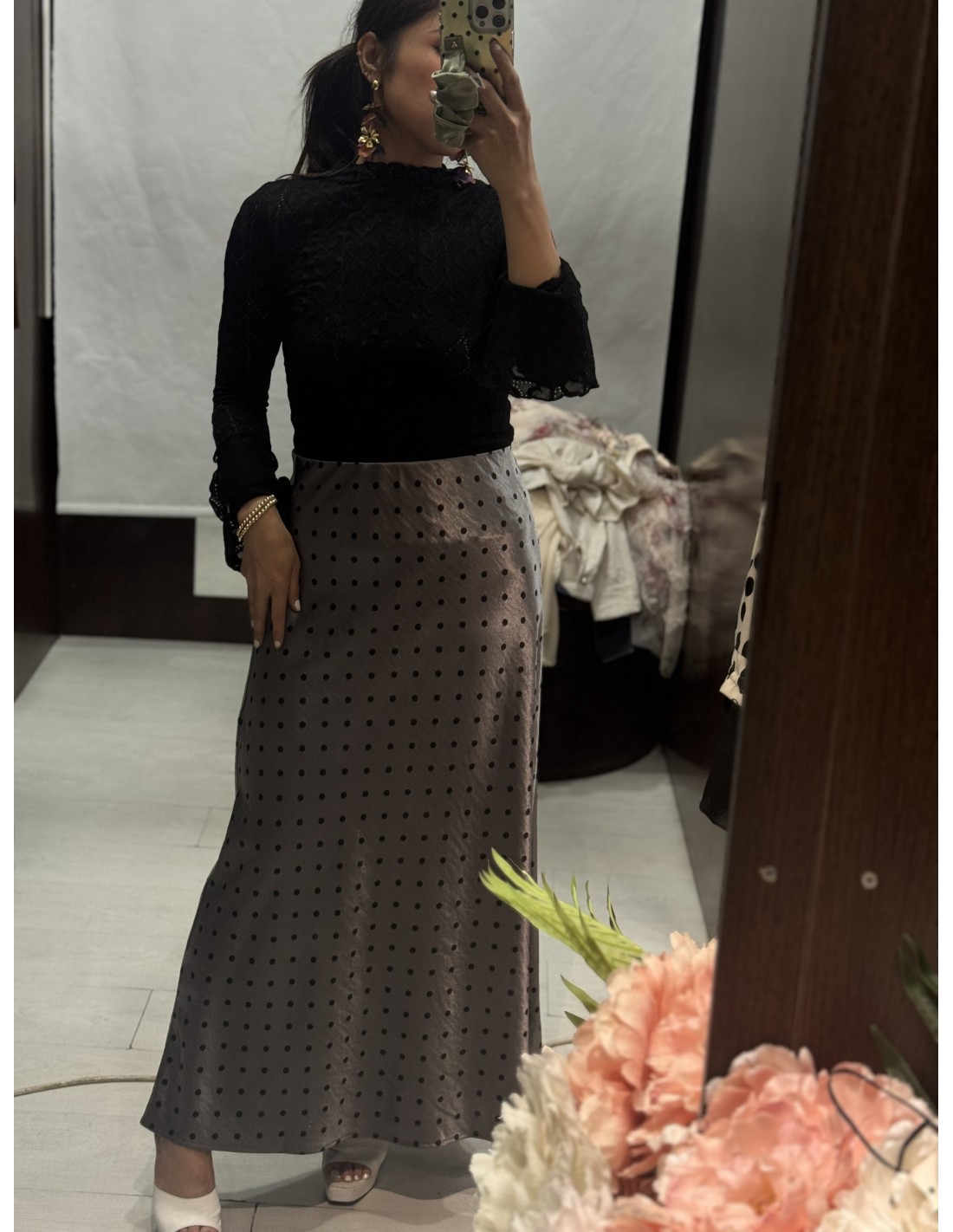 FALDA MIDI CON ESTAMPADO DE LUNARES ,CINTURILLA DE GOMA ELASTICA .2TALLAS S/M: 72-90-95CMM/L:78-102-98CM